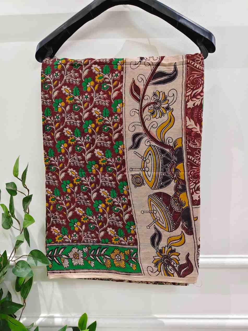 • Kalamkari sarees are sun-dried in open agricultural fields, which may result in minor dust marks — a testament to their authenticity. We recommend washing before first use.