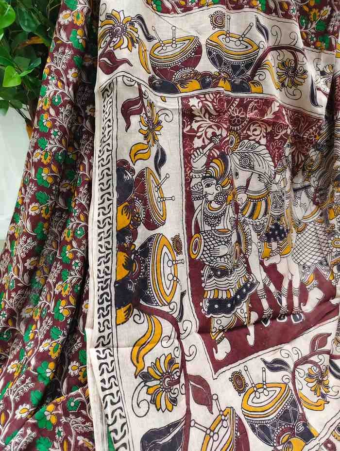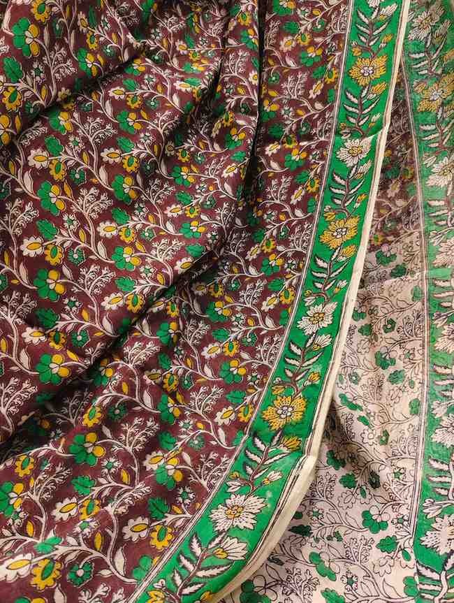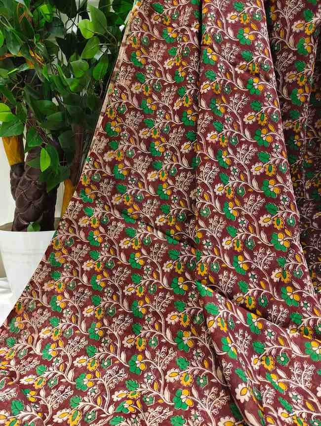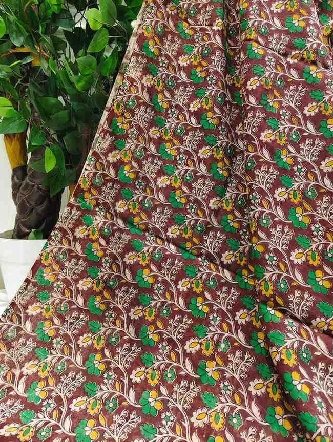 'Ketaki' Brown canvas with tiny Floral design cotton Kalamkari Saree