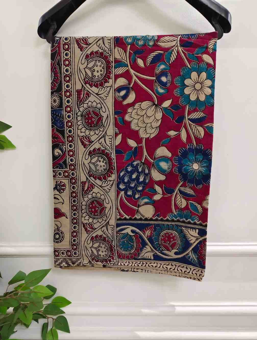 • Design: Intricate block print Kalamkari artwork