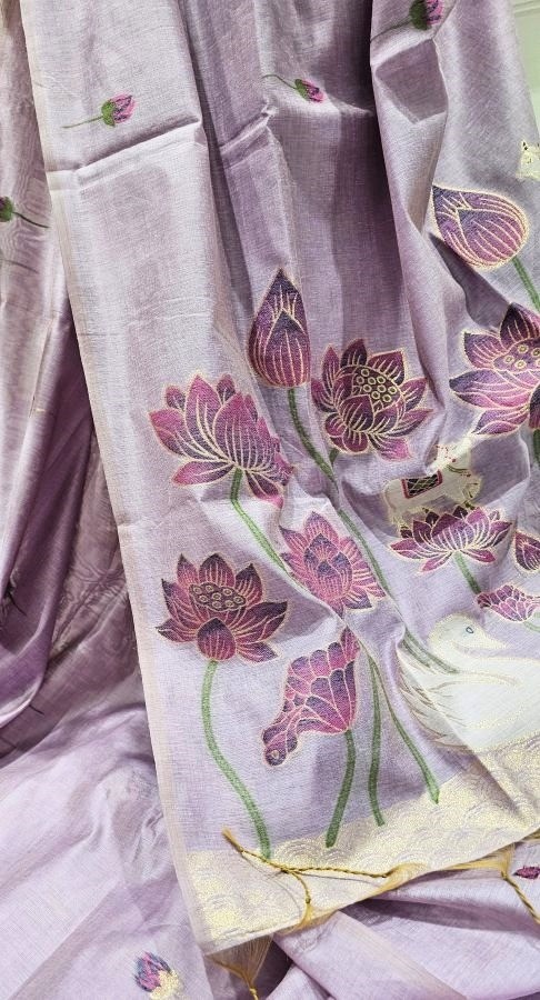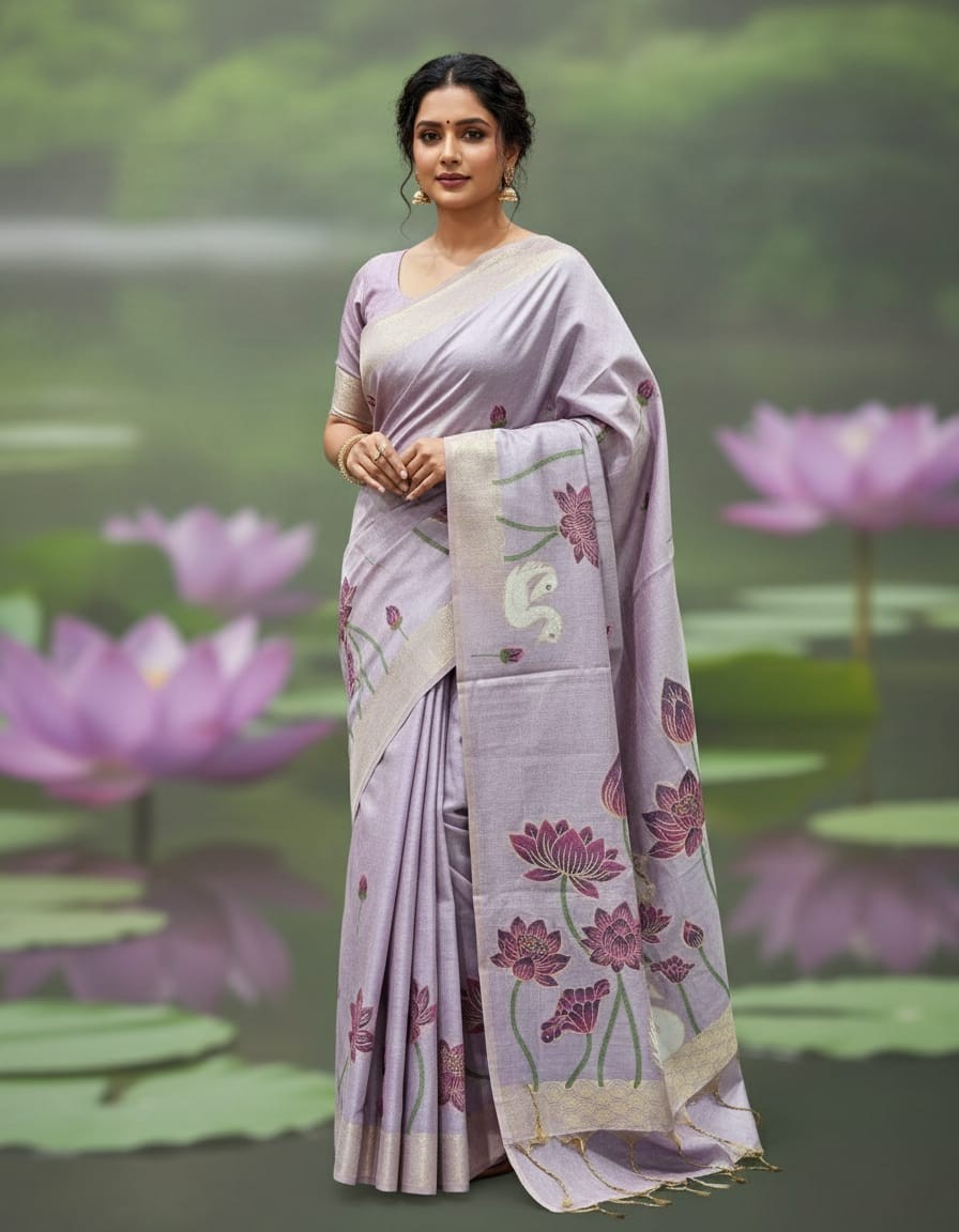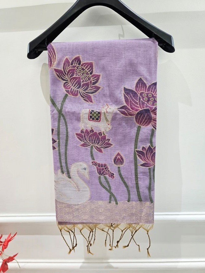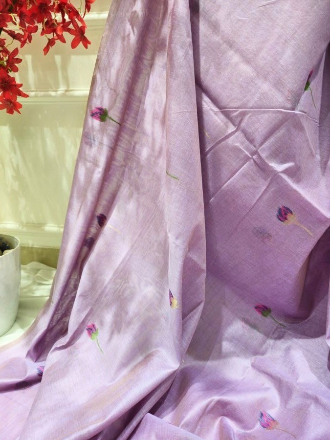 Lavender Hansika Muga Jamdani Saree