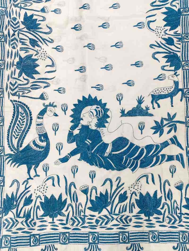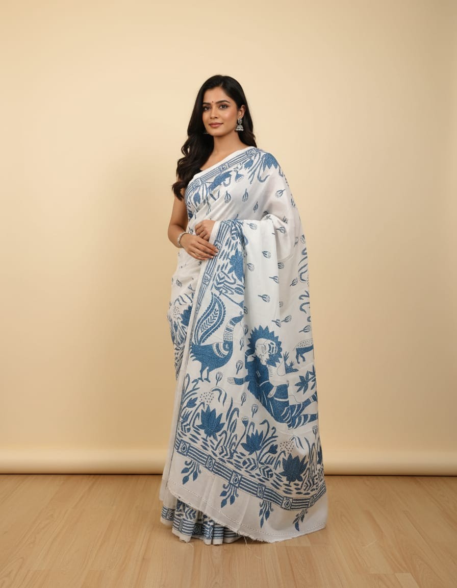 Celebrate timeless craftsmanship with this exquisite Kantha saree, a traditional form of folk embroidery from West Bengal, India. Each saree is a piece of wearable art, hand-stitched using a running stitch technique that has been passed down for generations.