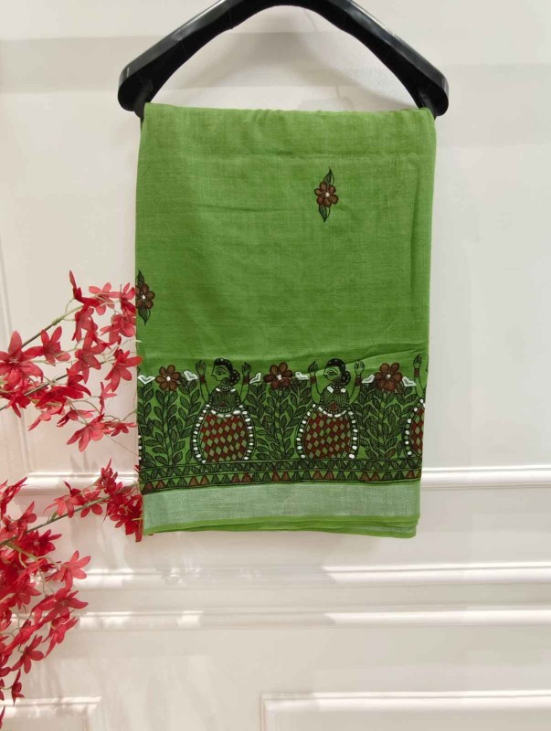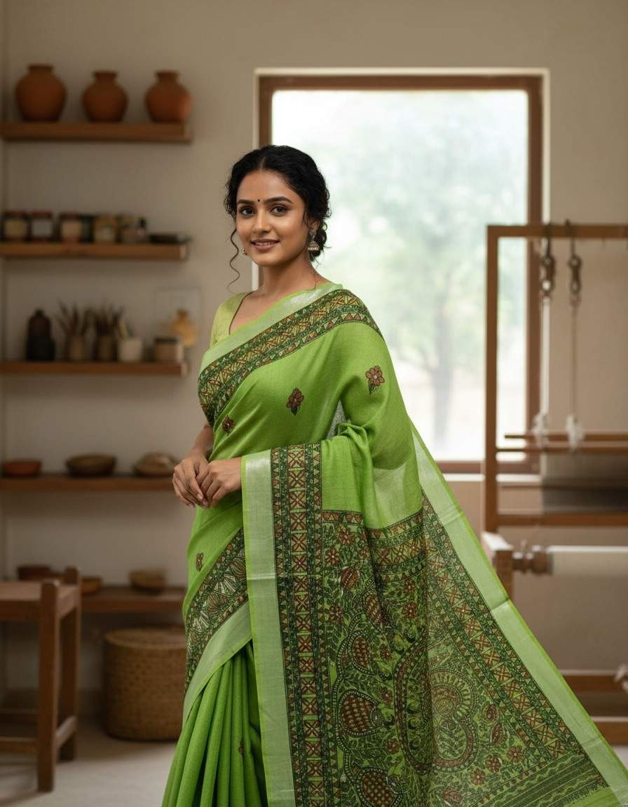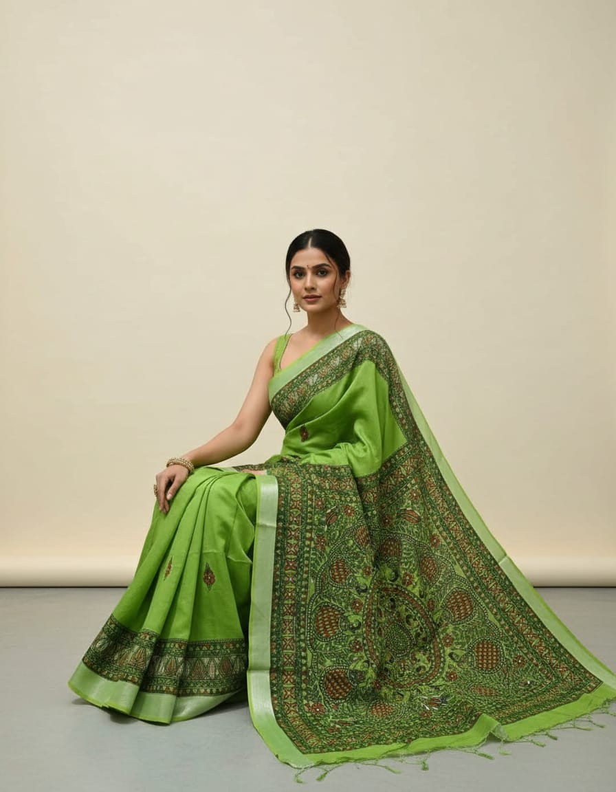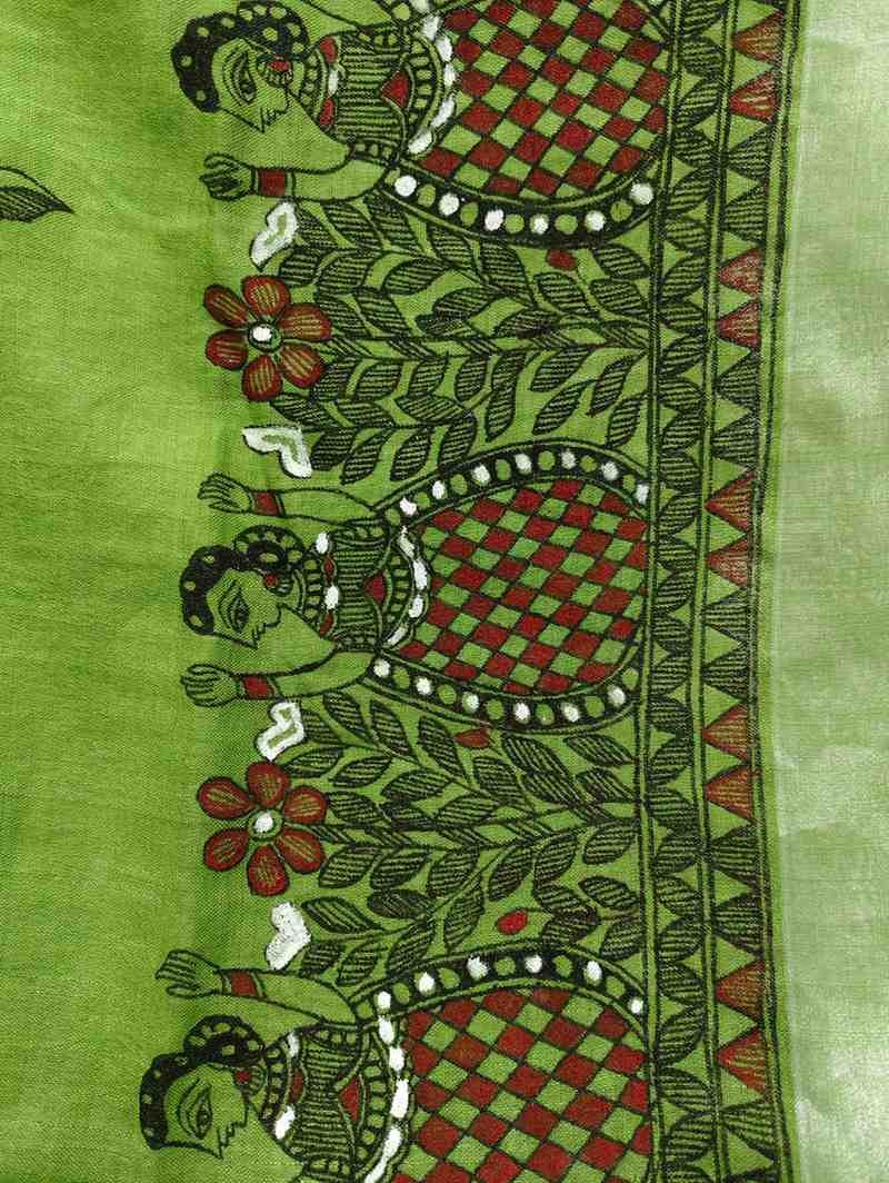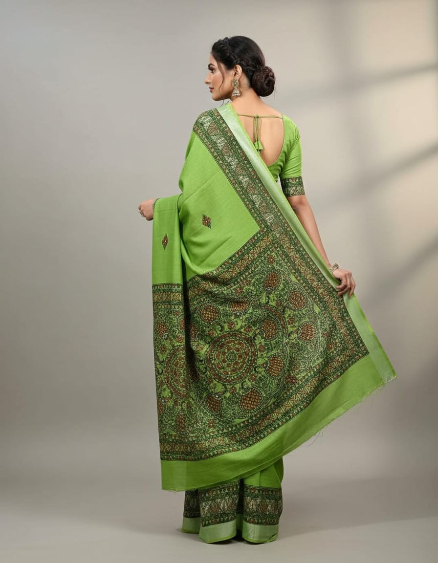 Madhunritya Forest Green Hand painted Madhubani Blend Saree