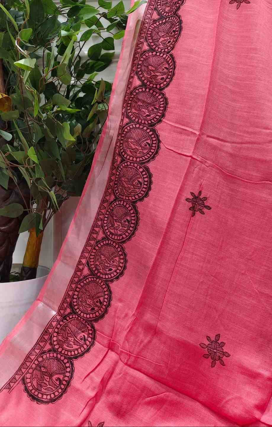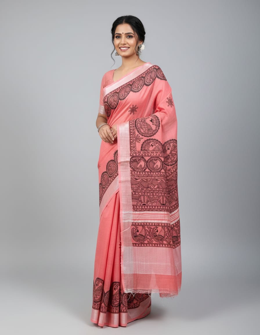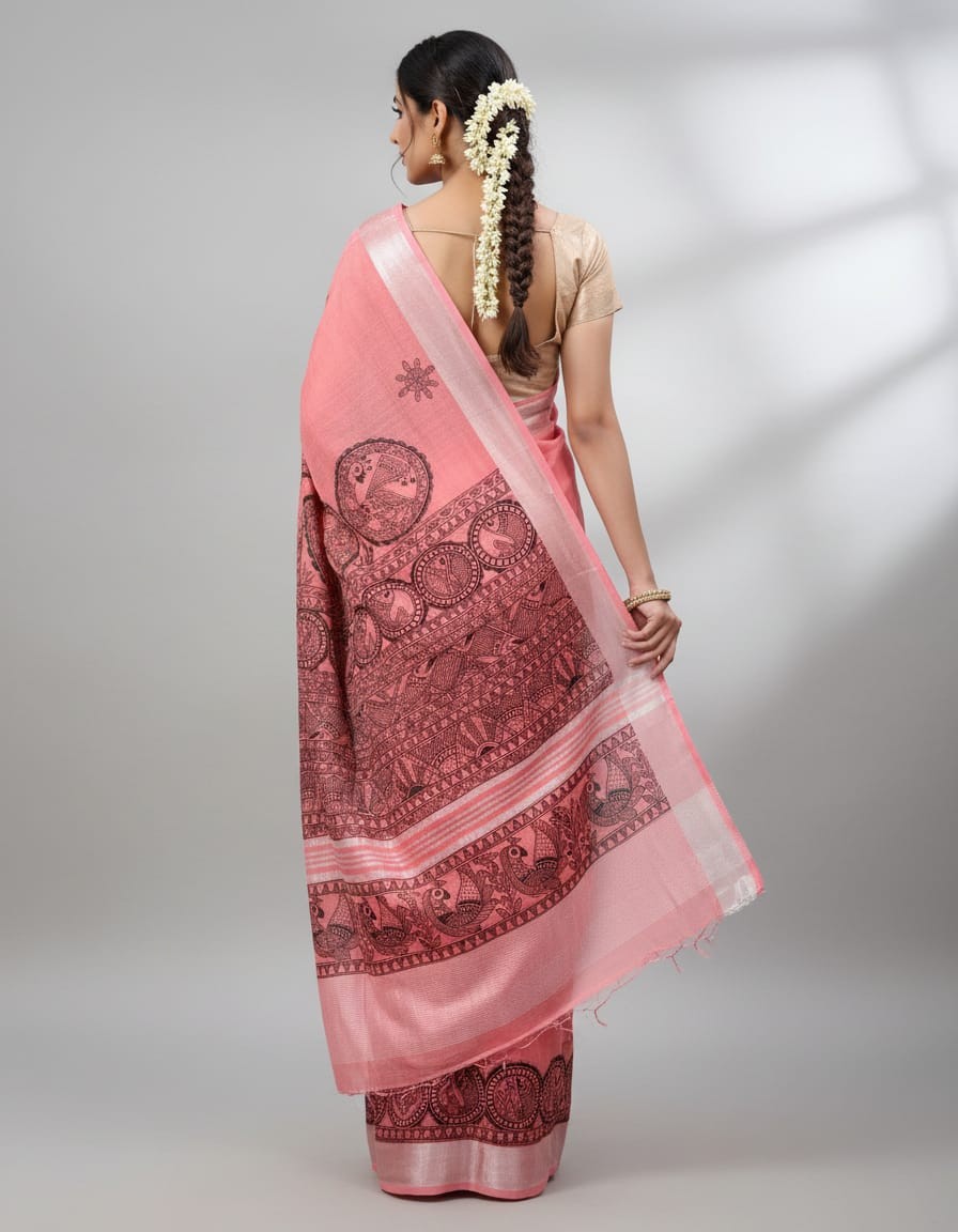 MANORATH' Pink Hand painted Madhubani Blend Saree