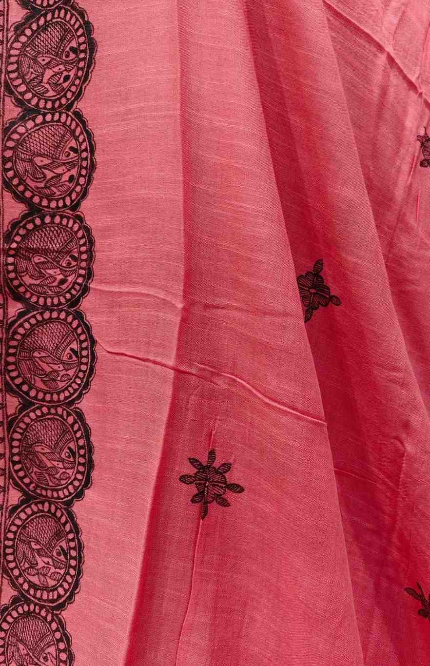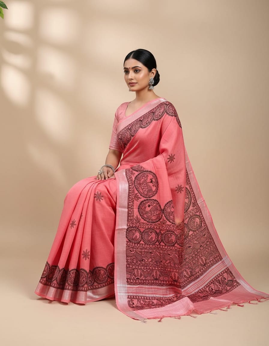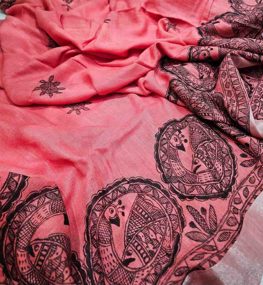 MANORATH' Pink Hand painted Madhubani Blend Saree