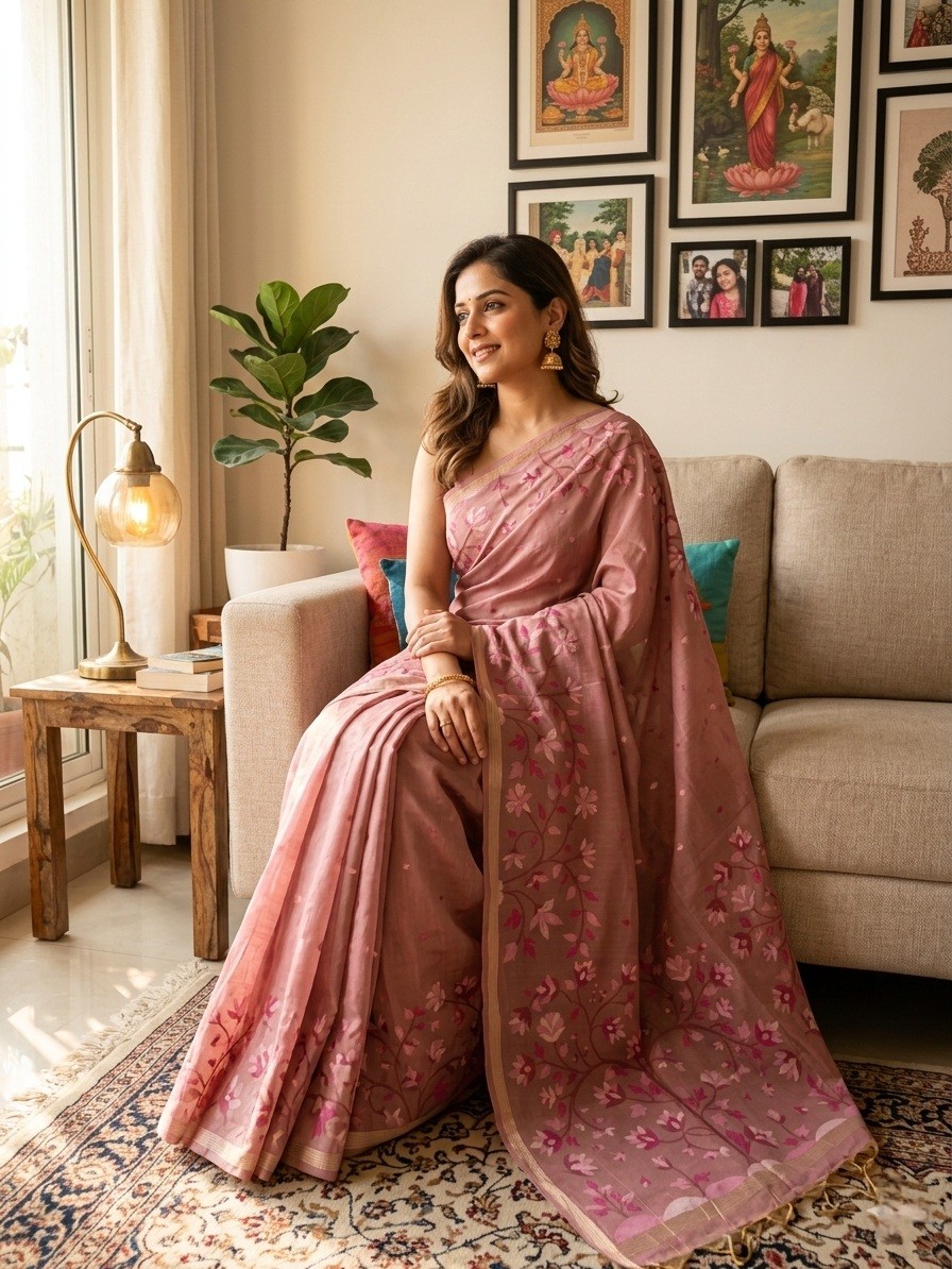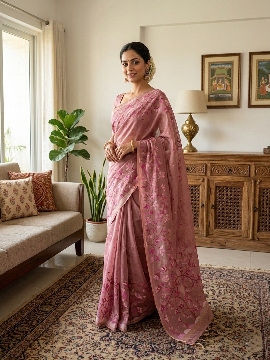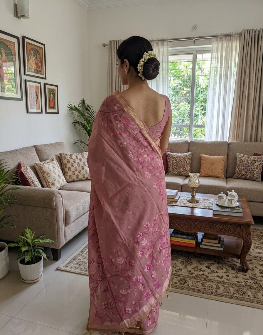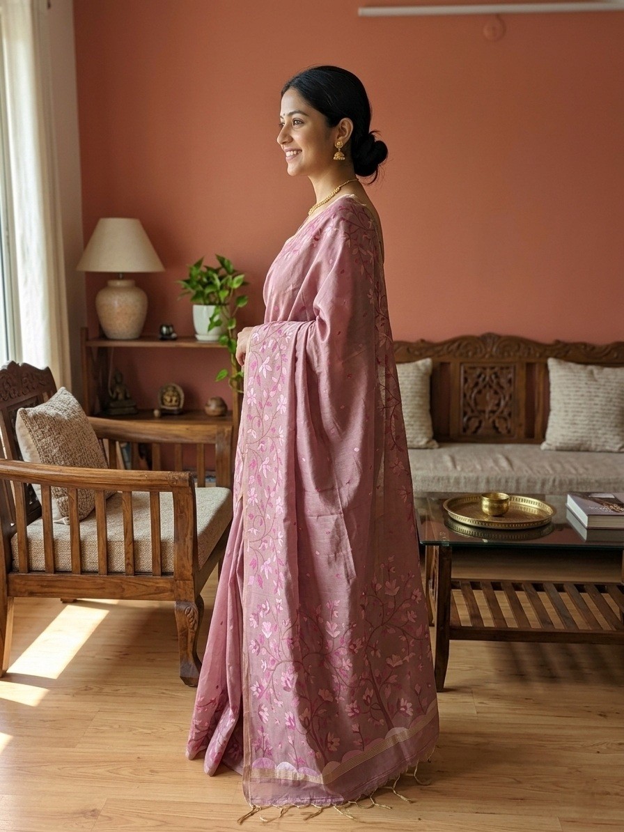 Mauve Bloom Muga Jamdani saree