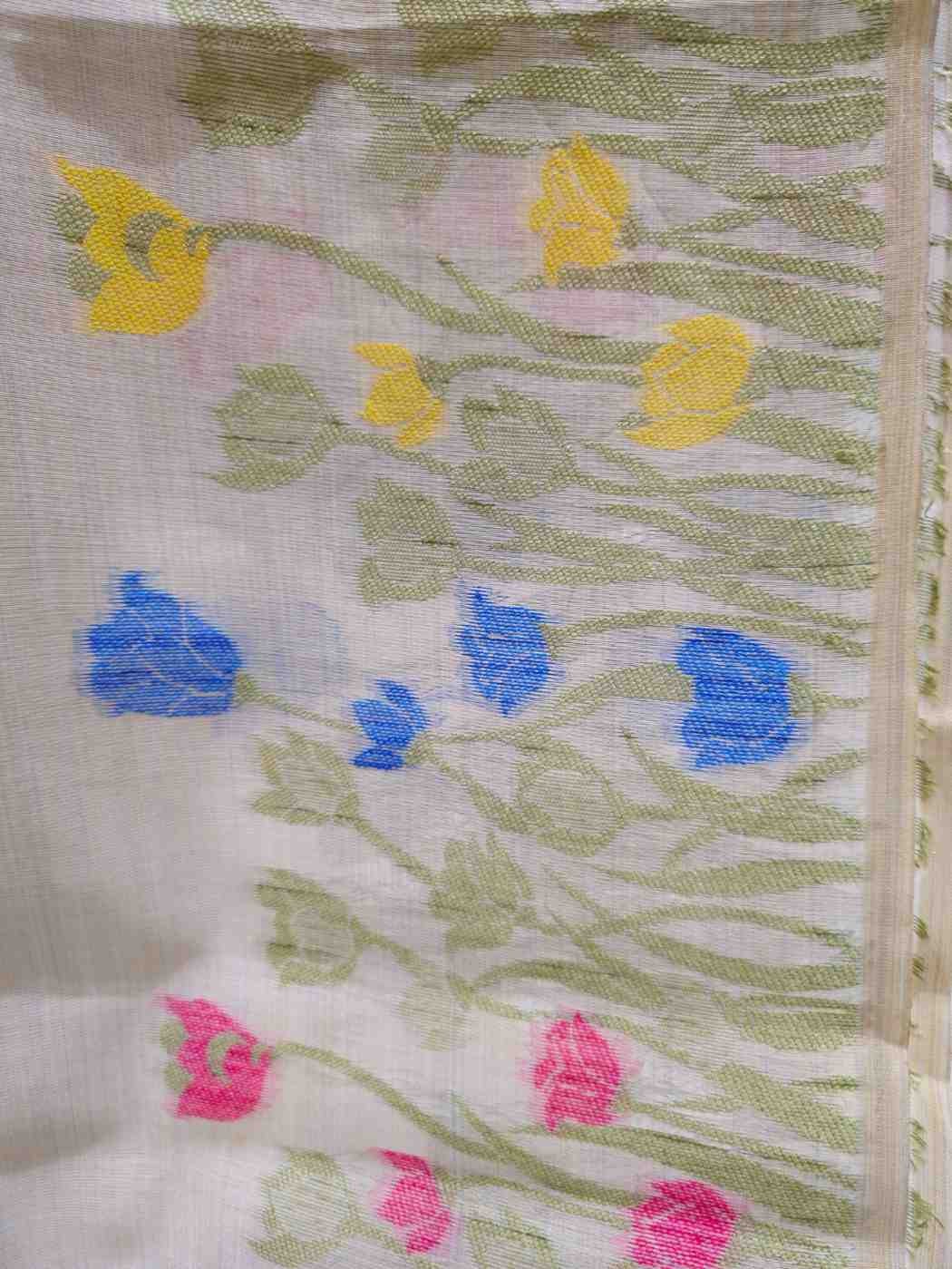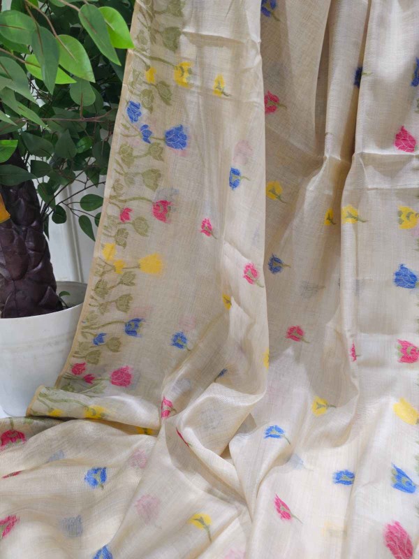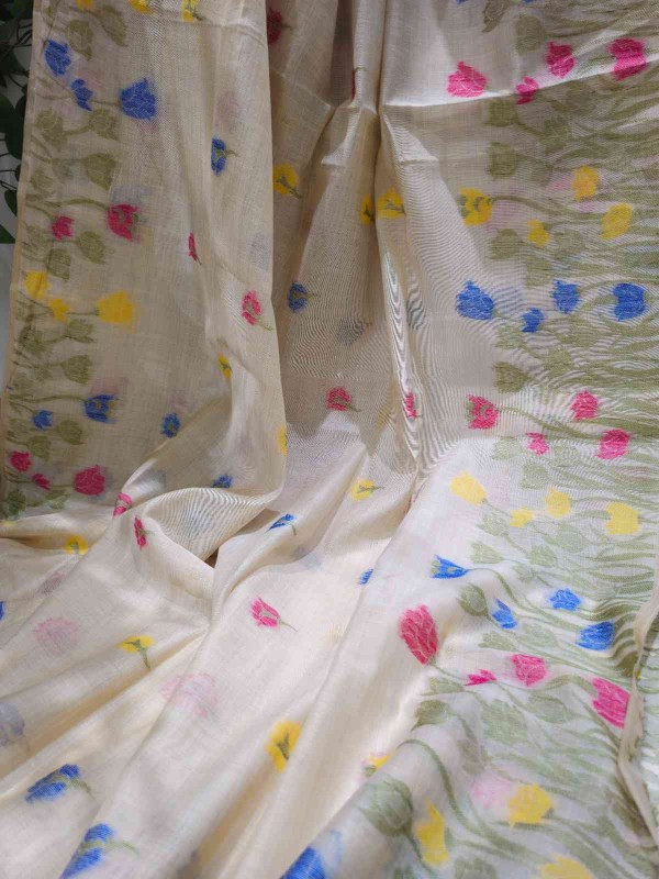 Muga Assam Silk – Off White with Magenta Lapis Floral Bloom