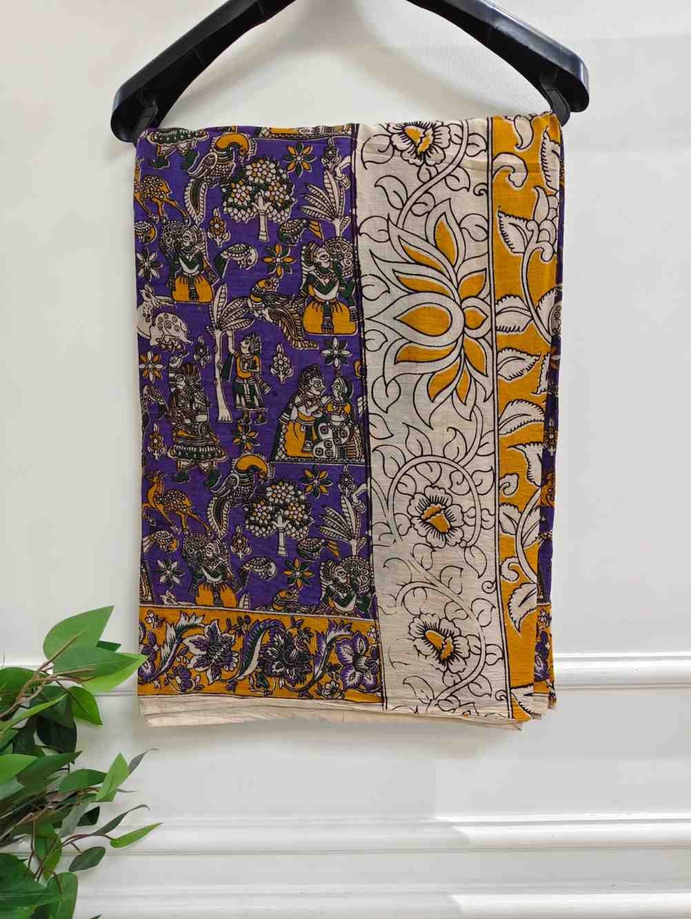 • Kalamkari sarees are sun-dried in open agricultural fields, which may result in minor dust marks — a testament to their authenticity. We recommend washing before first use.