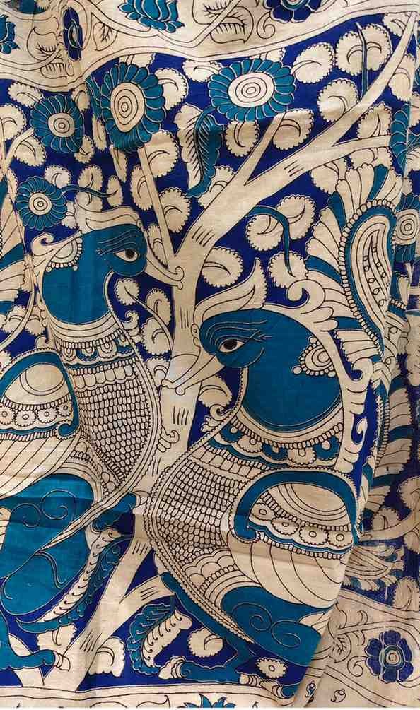 • Kalamkari sarees are sun-dried in open agricultural fields, which may result in minor dust marks — a testament to their authenticity. We recommend washing before first use.