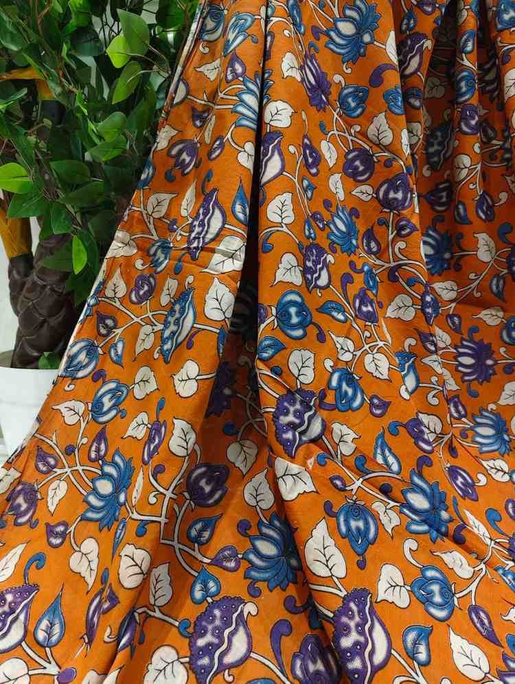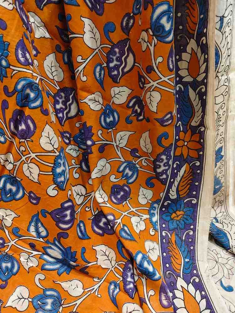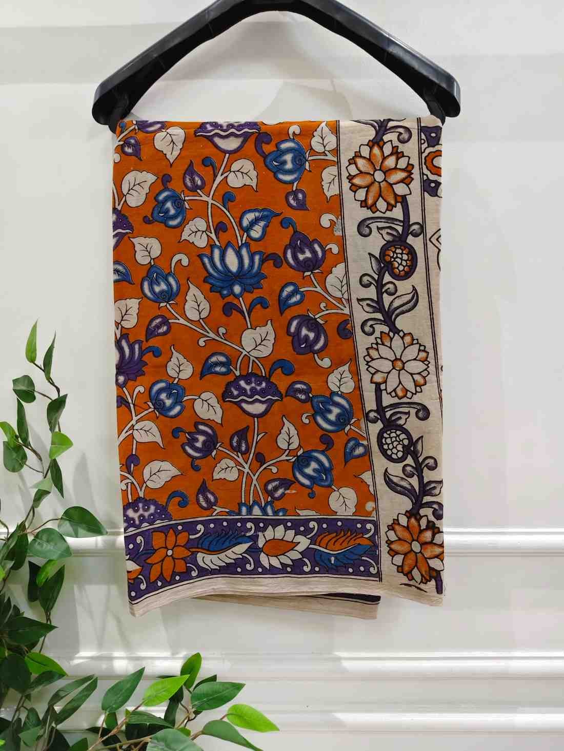 'Padmini' Orange canvas with Lotus motifs cotton Kalamkari Saree