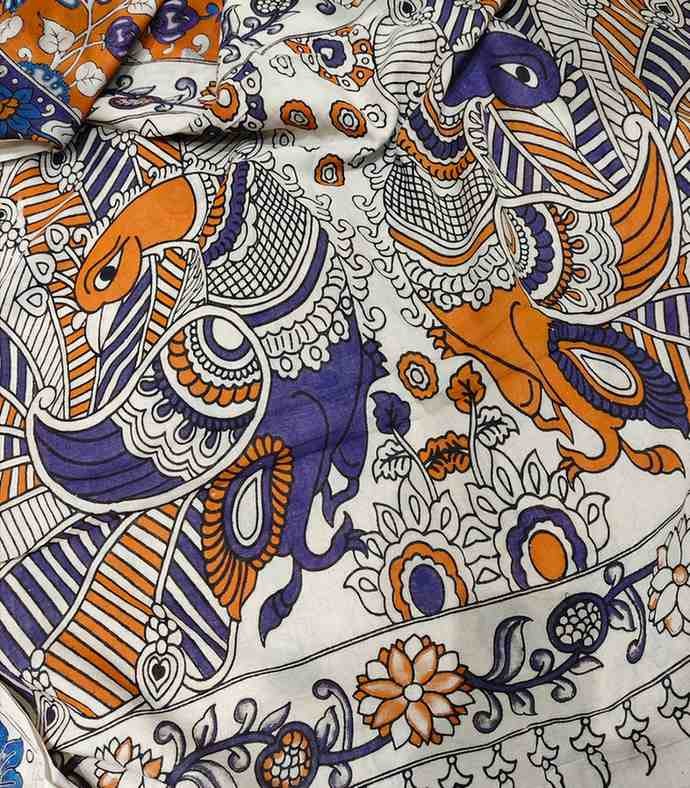 • Kalamkari sarees are sun-dried in open agricultural fields, which may result in minor dust marks — a testament to their authenticity. We recommend washing before first use.