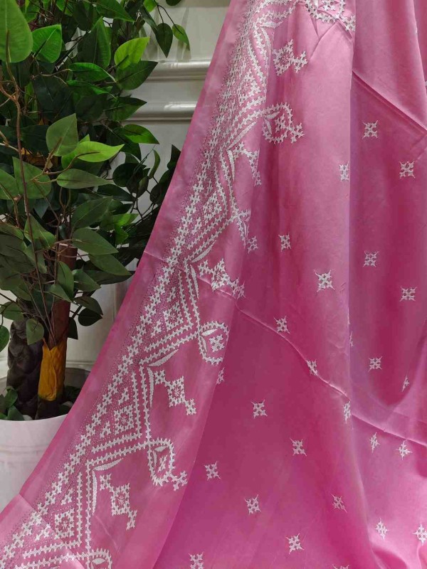Celebrate timeless craftsmanship with this exquisite Kantha saree, a traditional form of folk embroidery from West Bengal, India. Each saree is a piece of wearable art, hand-stitched using a running stitch technique that has been passed down for generations.