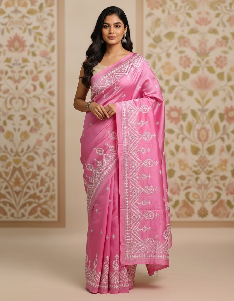Artisanal Craft: 100% hand-embroidered; no two sarees are alike