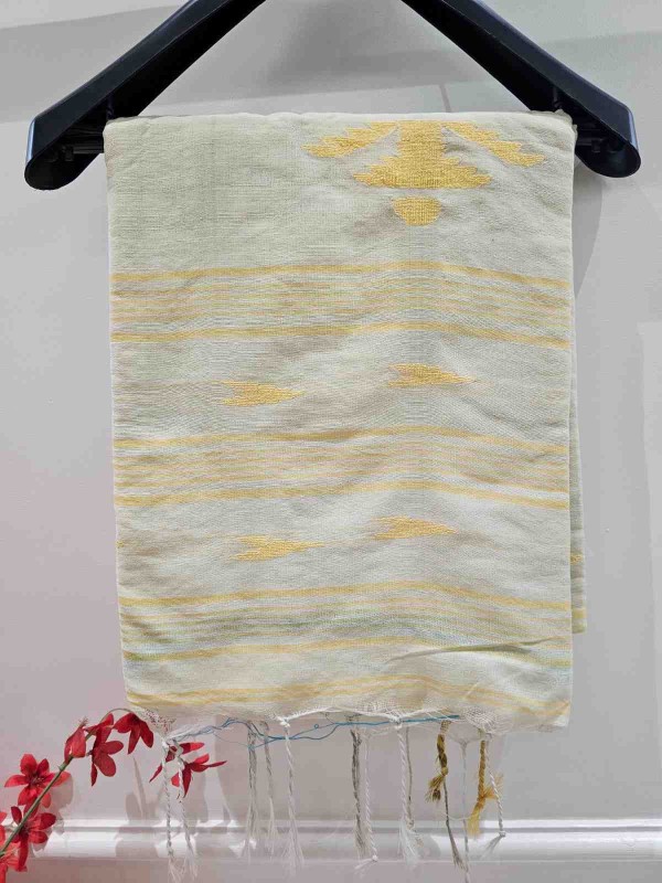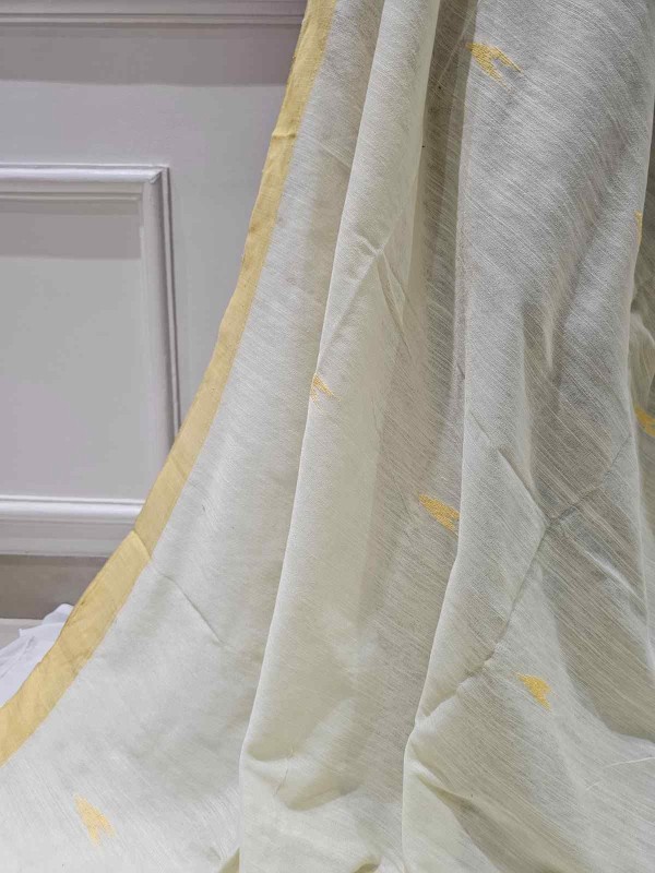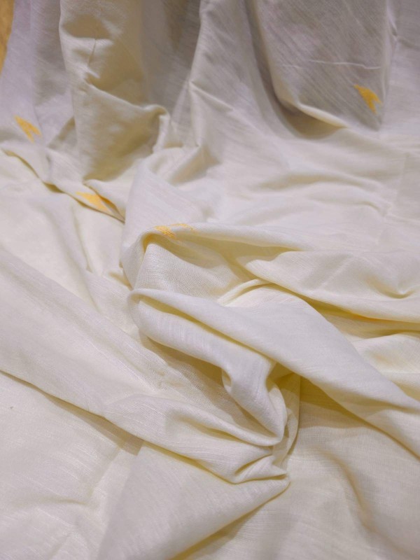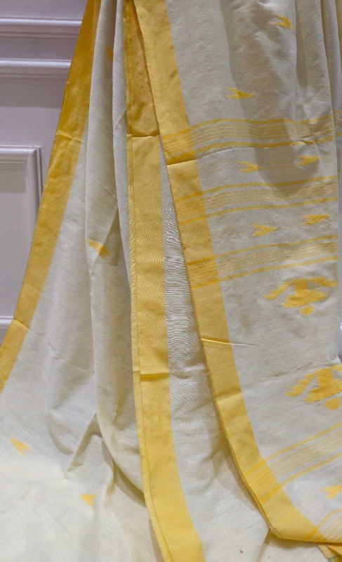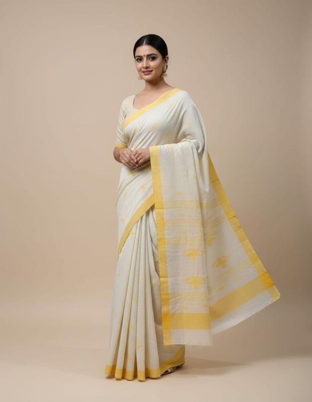Pure Cotton Suti Saree – Cream with Yellow Border