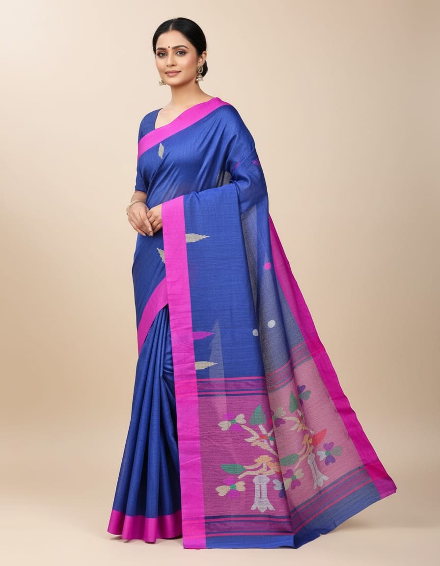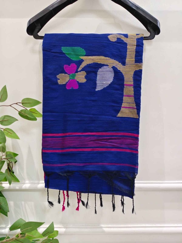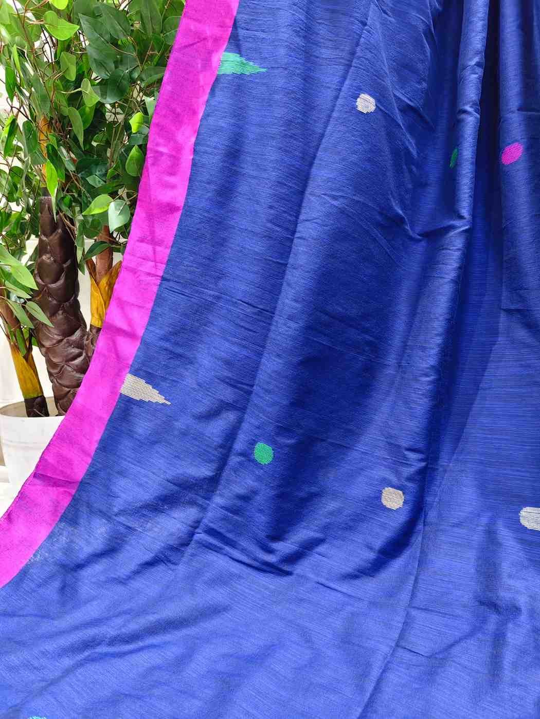 our Pure Cotton Suti Saree in Indigo Color. Woven from soft, breathable pure cotton, this saree offers a relaxed yet polished look