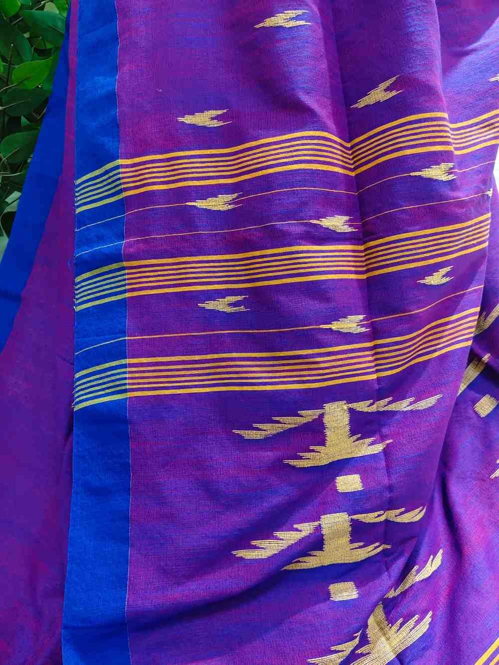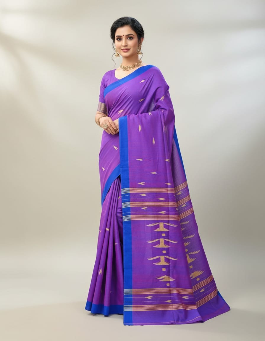 Blend comfort with contemporary style in our Pure Cotton Suti Saree in Purple Color. Woven from soft, breathable pure cotton, this saree offers a relaxed yet polished look that's perfect for everyday wear. The unique purple Color brings a modern twist to a classic drape, making it ideal for casual outings, office wear, or day events. Its lightweight texture and easy flow ensure all-day comfort while keeping your style effortlessly elegant and fresh.