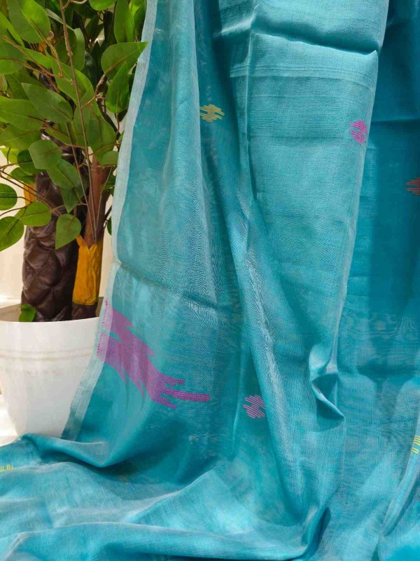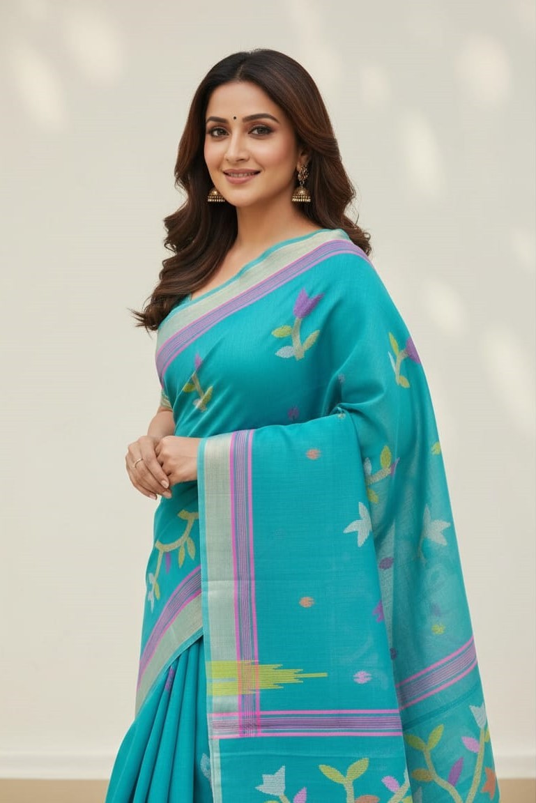 Bask in effortless elegance with our Pure Cotton Suti Saree in Teal, a perfect blend of comfort and charm. Handwoven from the finest quality cotton, this saree is lightweight, breathable, and ideal for everyday wear or casual occasions. The serene teal hue adds a touch of sophistication while reflecting a calm and refreshing vibe. Soft against the skin and easy to drape, this saree is perfect for long days, warm climates, and graceful styling. Whether for work, small gatherings, or leisurely outings, this piece brings simplicity and beauty together.
