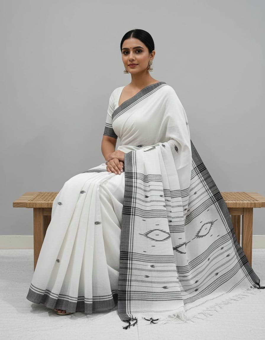 Embrace understated grace with our Pure Cotton Suti Saree in White, a timeless piece that radiates purity and elegance. Crafted from soft, breathable pure cotton, this saree offers unmatched comfort and ease, perfect for warm days and long hours. The pristine white hue symbolizes simplicity and sophistication, making it a versatile choice for everyday wear, spiritual gatherings, or minimal festive looks. Its lightweight drape and crisp texture make it a wardrobe essential for those who love classic, effortless style.