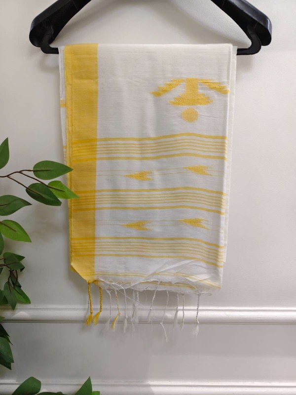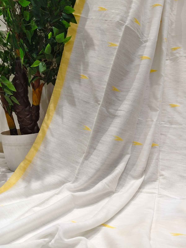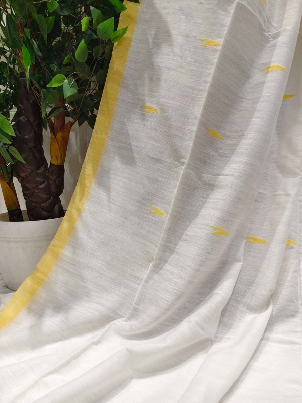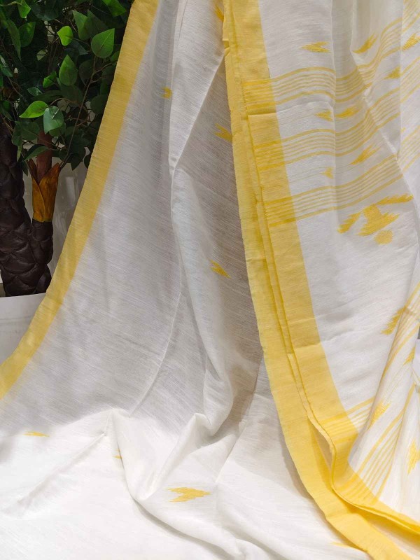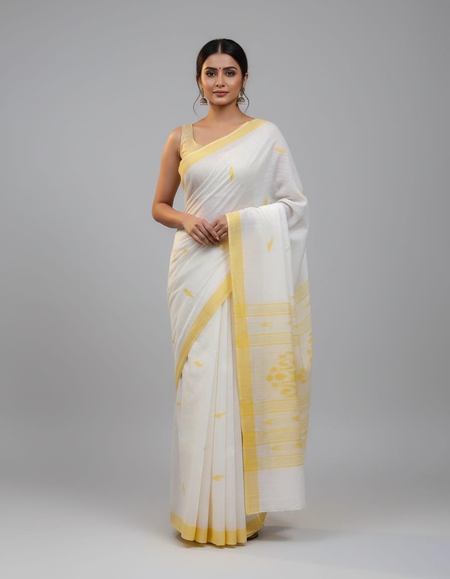 Blend comfort with contemporary style in our Pure Cotton Suti Saree in White Color With Yellow Border. Woven from soft, breathable pure cotton, this saree offers a relaxed yet polished look that's perfect for everyday wear. The unique yellow Border on White shade brings a modern twist to a classic drape, making it ideal for casual outings, office wear, or day events. Its lightweight texture and easy flow ensure all-day comfort while keeping your style effortlessly elegant and fresh.