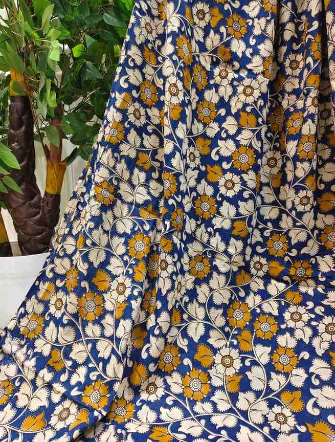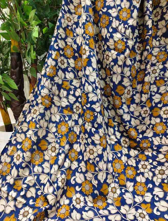 'Pushpa Vihar' Royal Blue canvas cotton Kalamkari Saree