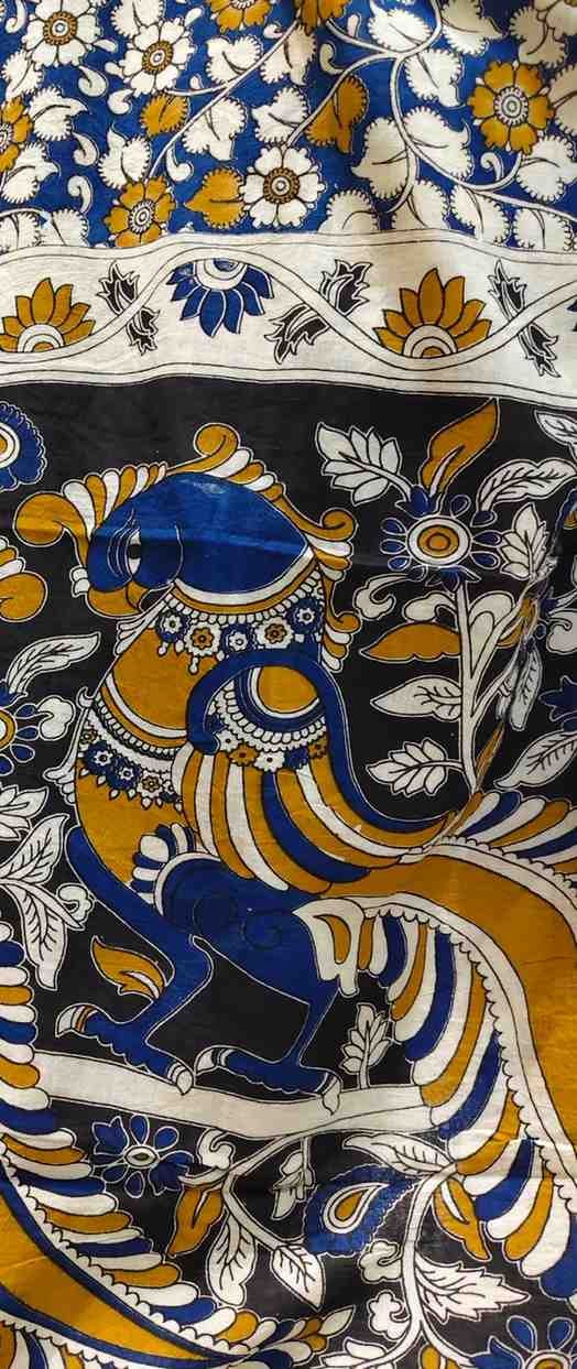 • Kalamkari sarees are sun-dried in open agricultural fields, which may result in minor dust marks — a testament to their authenticity. We recommend washing before first use.