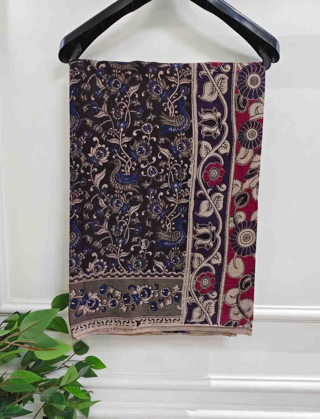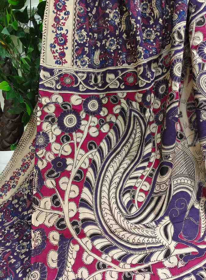 • Kalamkari sarees are sun-dried in open agricultural fields, which may result in minor dust marks — a testament to their authenticity. We recommend washing before first use.