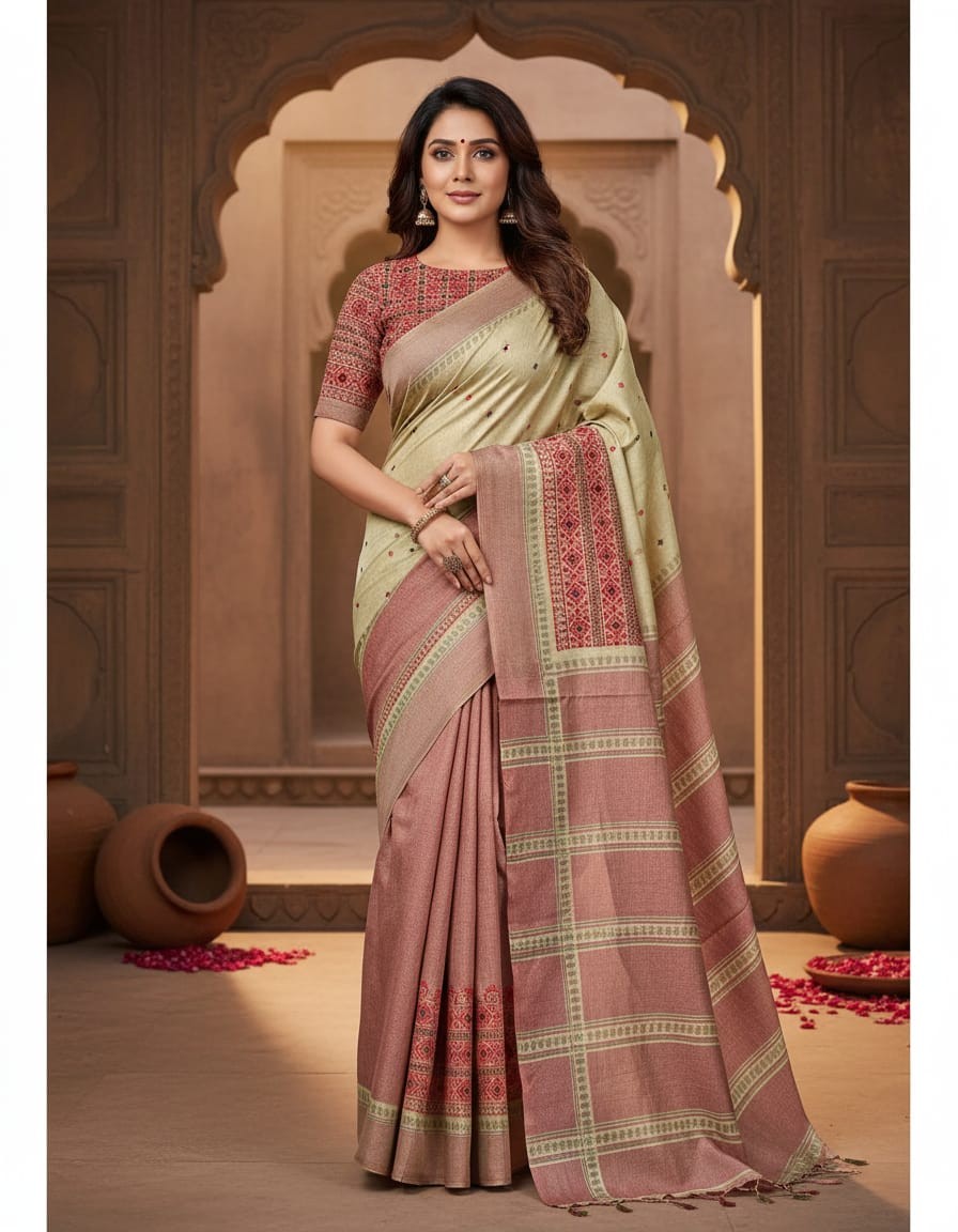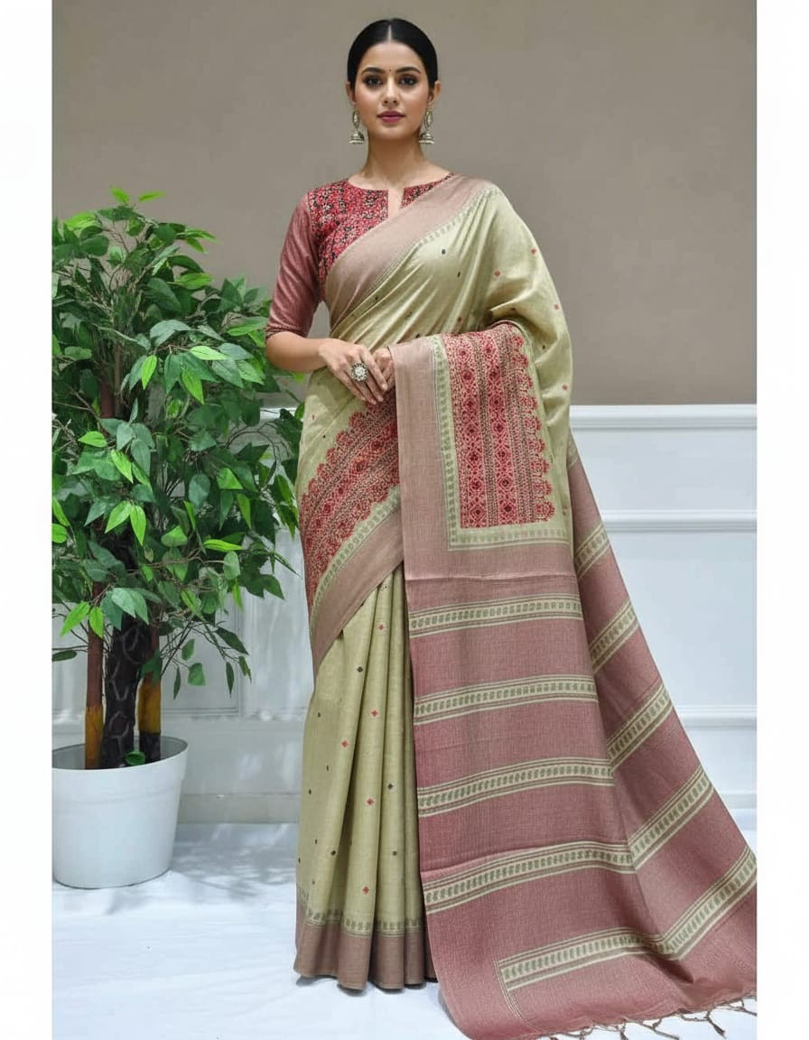 Add a touch of vibrant elegance to your wardrobe with our Riona Special Hand Stitched Assam Silk Saree featuring a striking Red Thread Border. Woven from the finest Assam silk, this saree combines the natural sheen and luxurious texture of the fabric with the intricate hand-stitched red thread border, which infuses it with a contemporary and bold flair. The rich red border adds an elegant contrast to the serene beauty of Assam silk, making it an ideal choice for weddings, festive celebrations, or cultural gatherings. This saree offers a perfect blend of tradition and modernity, ensuring you make a statement at every occasion.