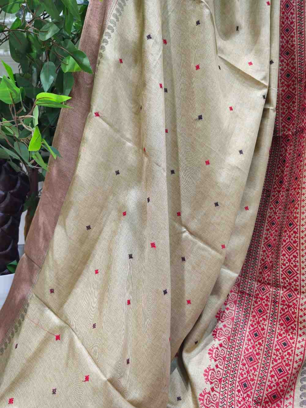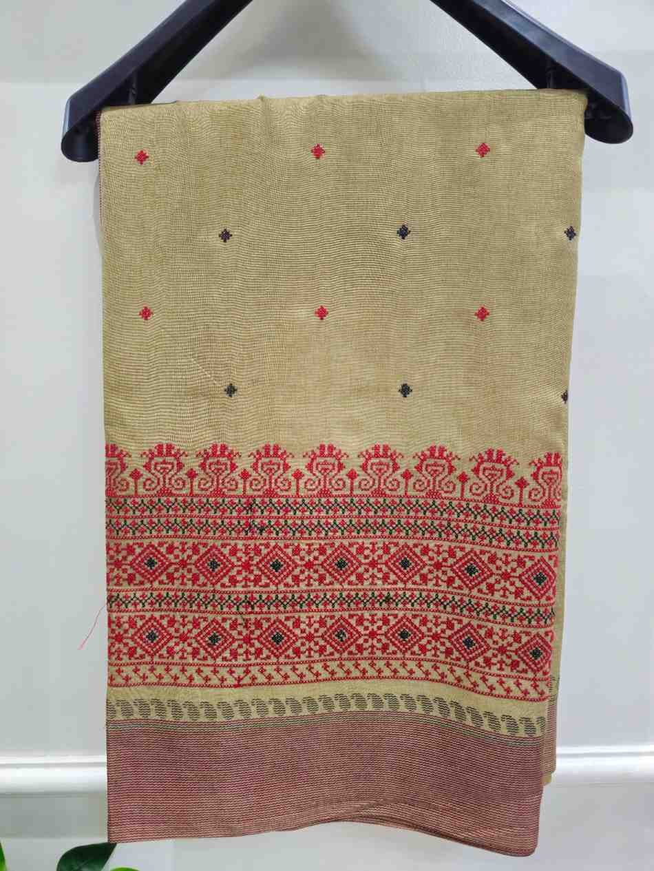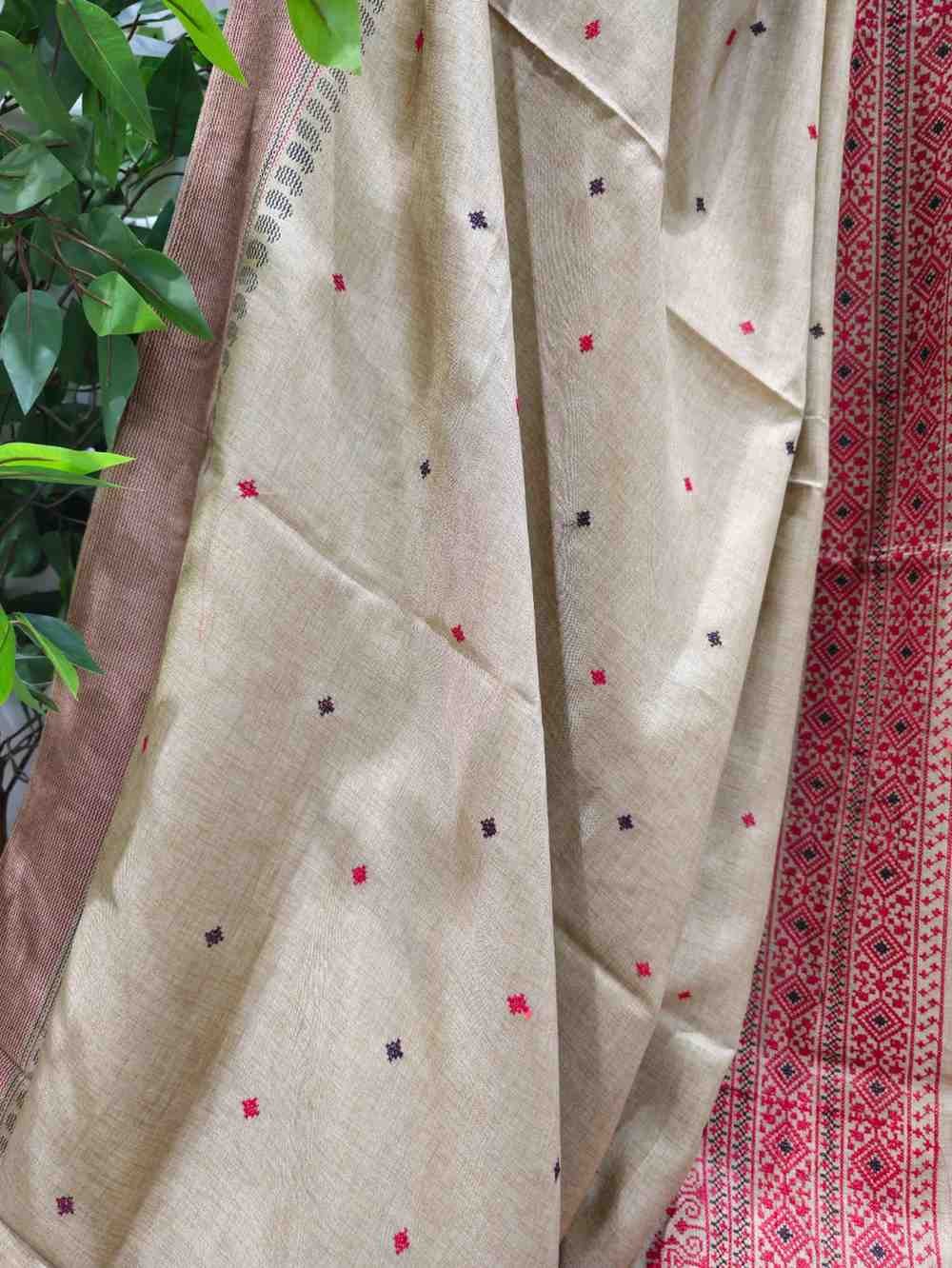 Riona Special Hand Stitched Assam Silk – Red Thread Border