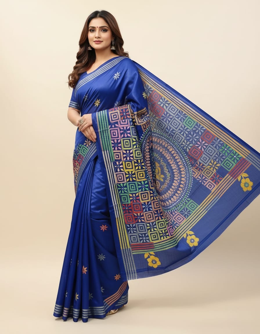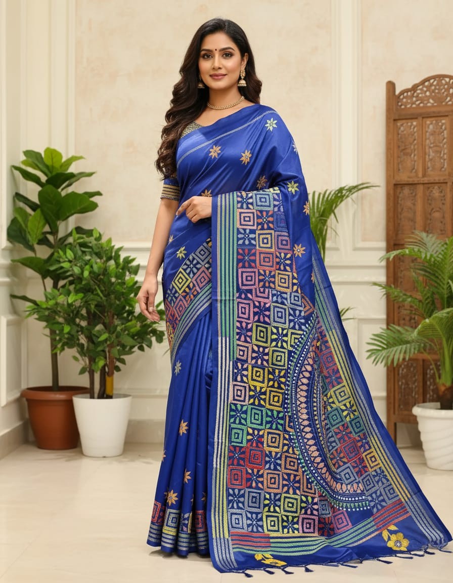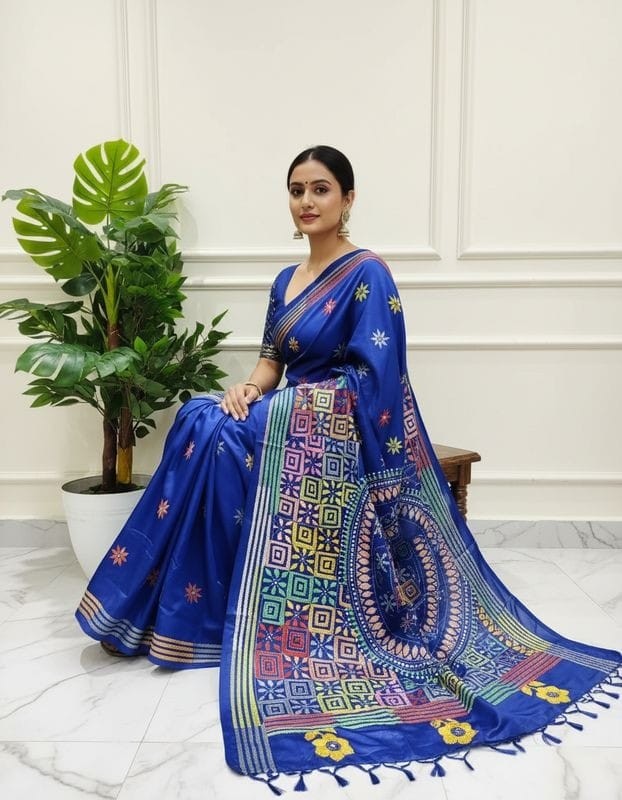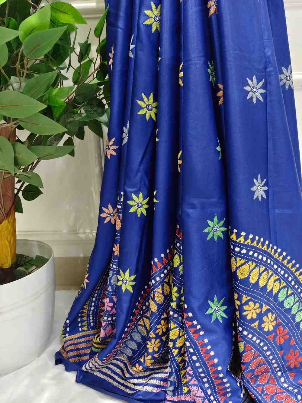 Royal Blue Glow Bangalore Silk Kantha Saree
