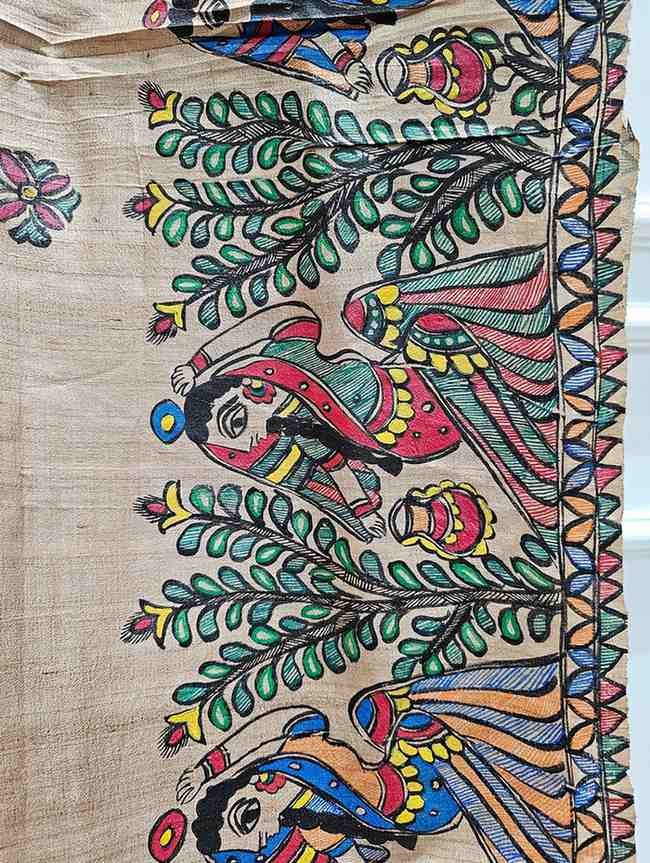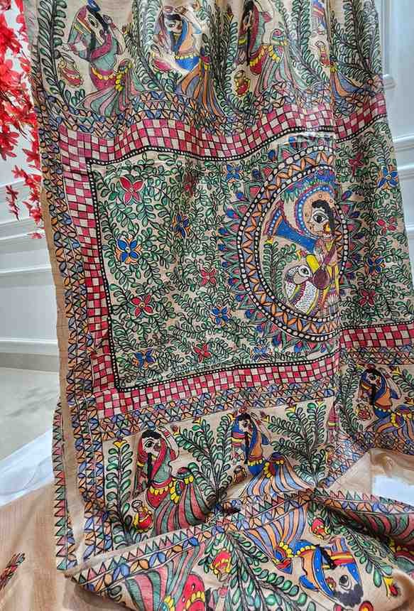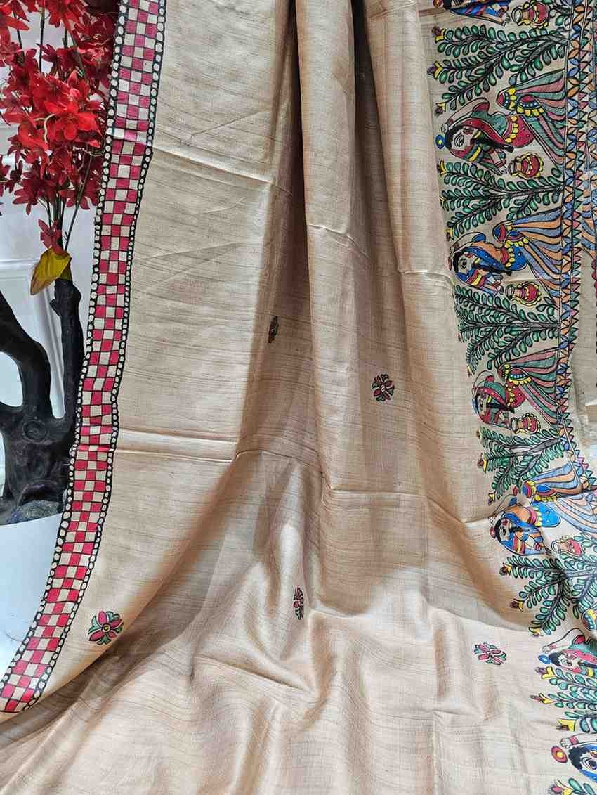 'SARASWATI' Hand painted Madhubani Pure Tussar Silk Saree
