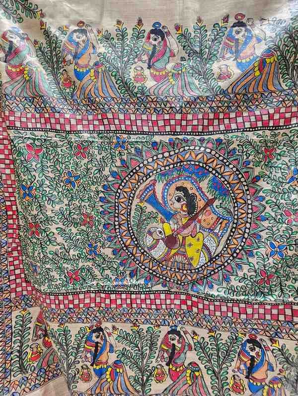 Design: Hand painted Madhubani Art with Saraswati Motifs