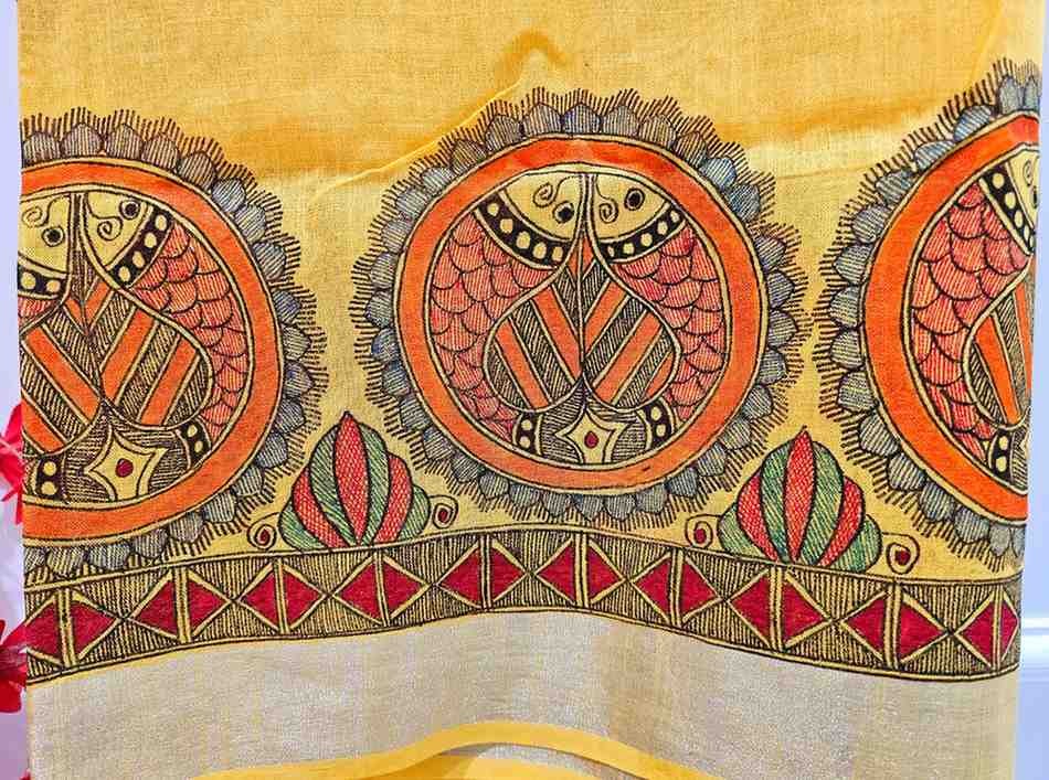 Swarna Matsya Hand painted Madhubani Blend Saree