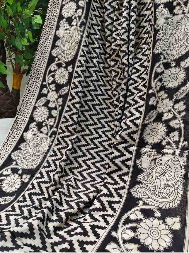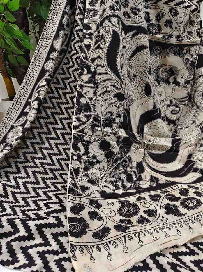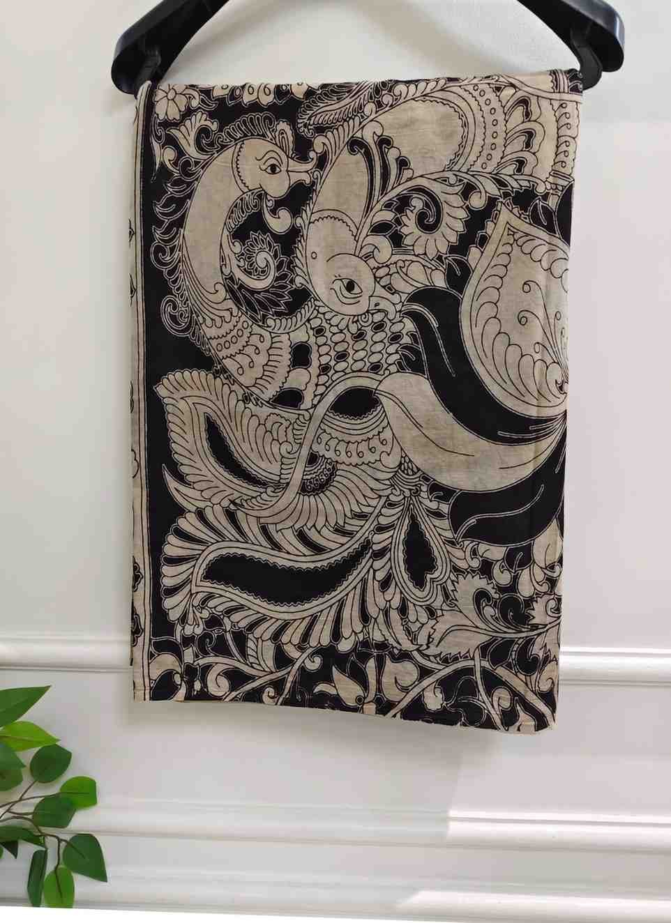 • Kalamkari sarees are sun-dried in open agricultural fields, which may result in minor dust marks — a testament to their authenticity. We recommend washing before first use.