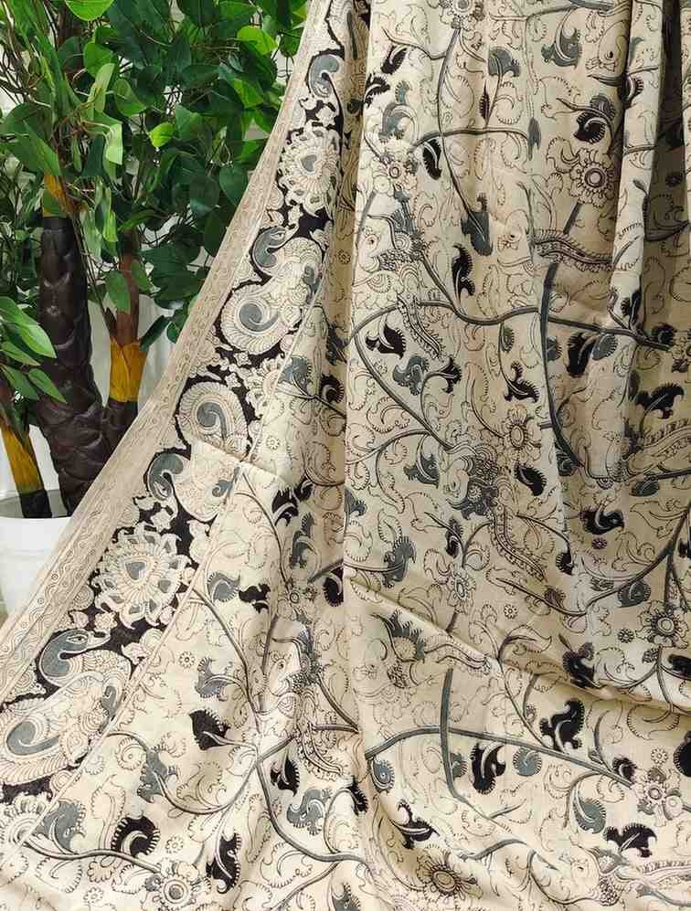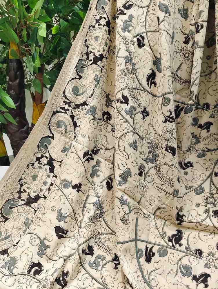'Vanashri' Off White canvas cotton Kalamkari Saree