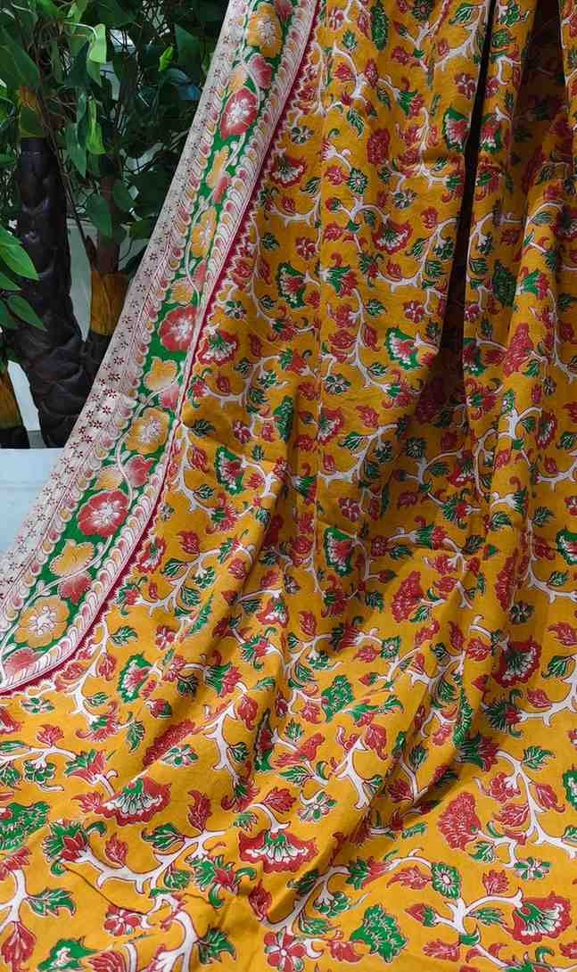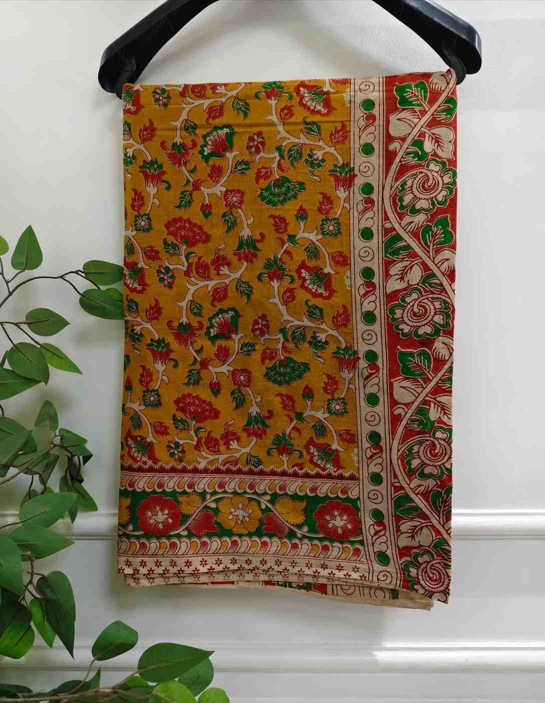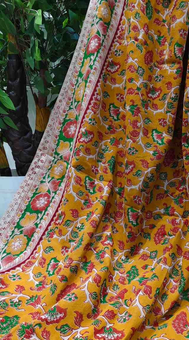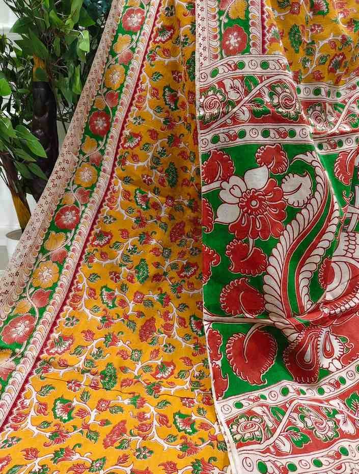 'Vasantika' Yellow canvas with Floral motifs cotton Kalamkari Saree