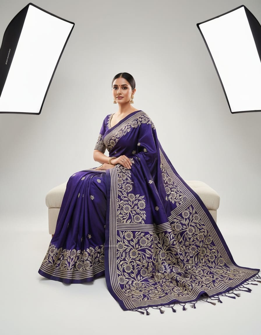 • Artisanal Craft: 100% hand-embroidered; no two sarees are alike