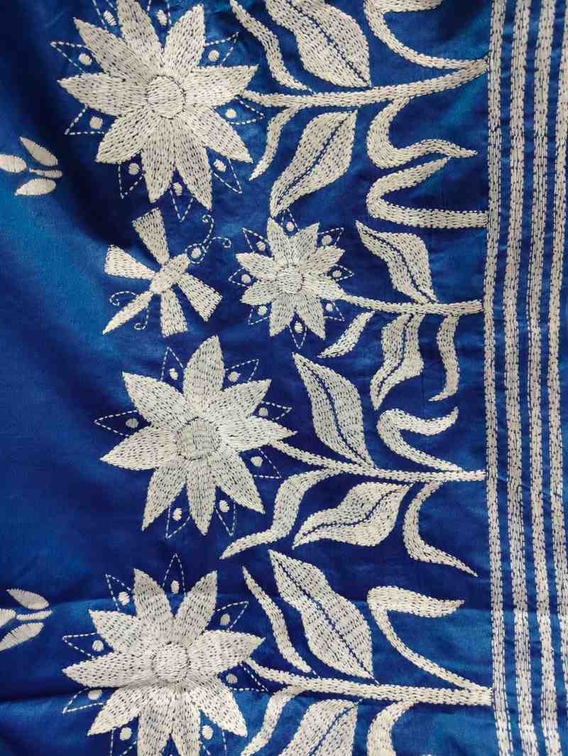 Celebrate timeless craftsmanship with this exquisite Kantha saree, a traditional form of folk embroidery from West Bengal, India. Each saree is a piece of wearable art, hand-stitched using a running stitch technique that has been passed down for generations.